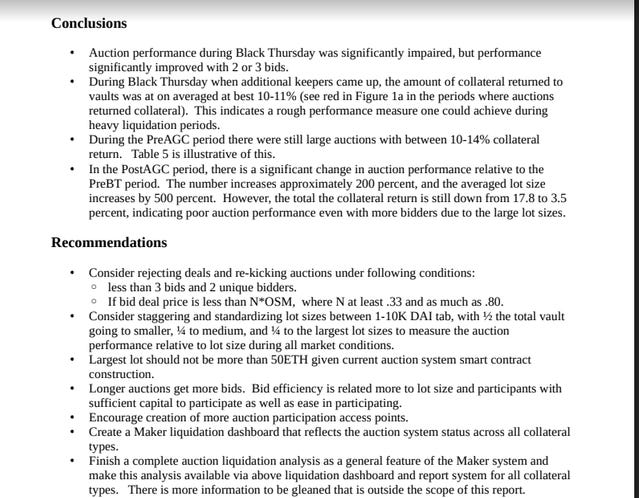 Zero bid auction post mortem data evaluation - Maker Man currently completing the data analytics from black Thursday. This part is moving behind the scenes. A report is forthcoming in the next several weeks. - Completed